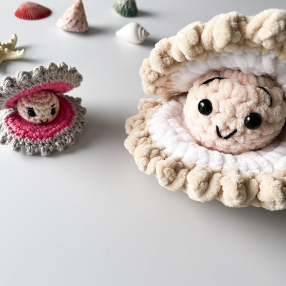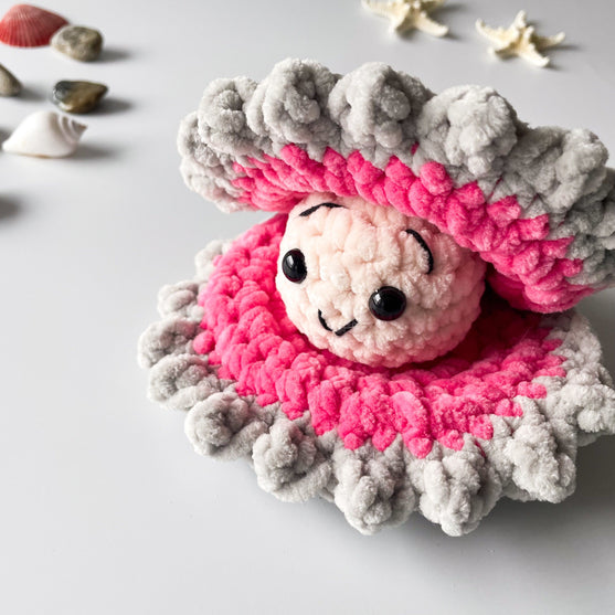 No-sewing amigurumi, everything is joined with the crochet hook! You can create different pearls with different faces and change them. You will begin with the internal parts of the shell. Then you will work the external part of the shell and you will join external and internal parts together. Lastly, you will create the oyster pearl. In the pattern you will have photos step-by-step for everything. The pictures are all at the end of the pattern, so you can print the pattern without printing the pictures.
