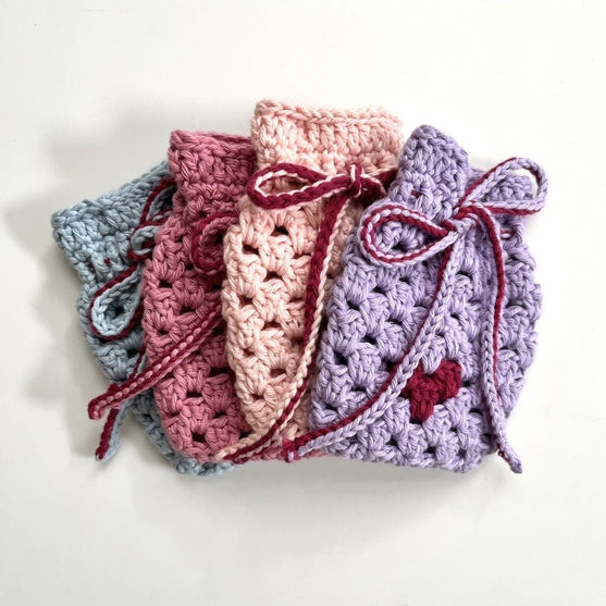 It’s a super quick and easy make. You’ll mostly have to make double crochet stitches. The Granny stitch makes the Valentino pouch extra hip!