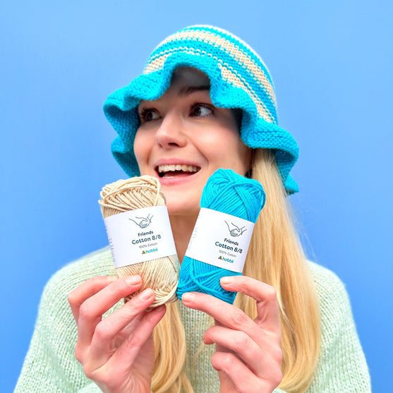 Let the yarn colors of the stripes run along the side and be careful not to tighten them.