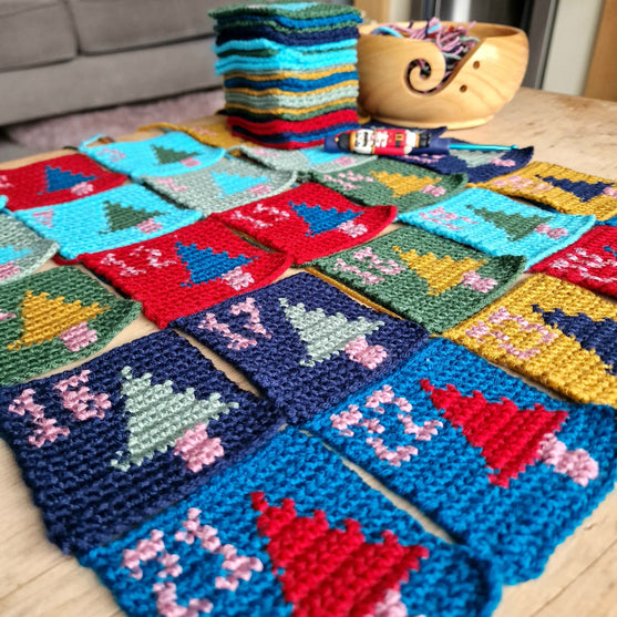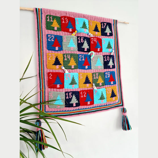 How bright and colourful is this lovely Advent Calendar!! 25 gorgeous individually made squares that you then sew on to a back panel, then add the last details with this gorgeous border and added tassels to finish it off!
