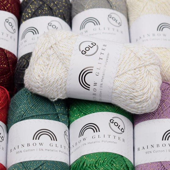 Rainbow Glitter is a part of our great Hobbii Rainbow family and therefore matches certain colors from it. Rainbow Glitter has the unique twist of consisting of 95% cotton and 5% metallic polyester, which gives it an essential shimmer-effect.