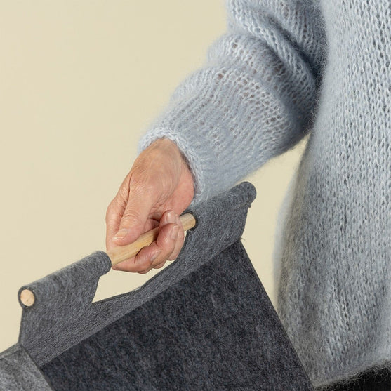 For the yarn lover with a huge yarn collection who could use some extra storage. If that yarn lover is you, this large felt basket is your dream come true!