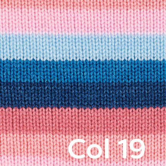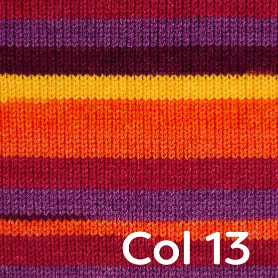 The long color changes result in mainly bright, vibrant, and joyful stripes, as well as a few pastel options. The 550-meter-long skeins will get you very far in the progress of your projects making sure that you have fewer knots to hide.