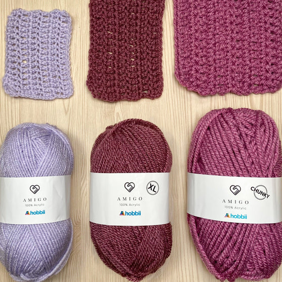 Amigo is a really soft yarn with wonderful, airy volume. It is produced from 100% HB acrylic of very high quality and comes in an enormous selection of colors.