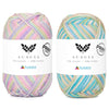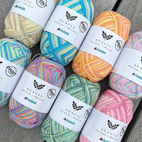 Acacia Print is the perfect example of a lovely mixed yarn where acrylic and cotton are spun together and enhance each other’s best qualities. The cotton ensures that the yarn feels soft against your skin and has good breathability, while the acrylic makes the yarn lighter and extra flexible.