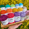 Like our other 100% cotton yarns, Rainbow Deluxe can withstand warm wash - but washing at higher temperatures will inevitably make the colors fade over time. Unless you’re knitting/crocheting dishcloths or towels we recommend that you wash them at a max of 104°F (40°C).
