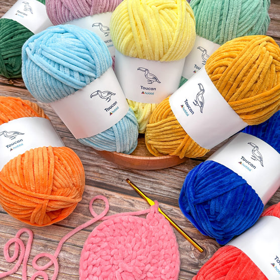 Toucan is a voluptuous chenille yarn that will bring a touch of velvet to your stash. This yarn is produced in 100% polyester which makes it plush and easy to care.