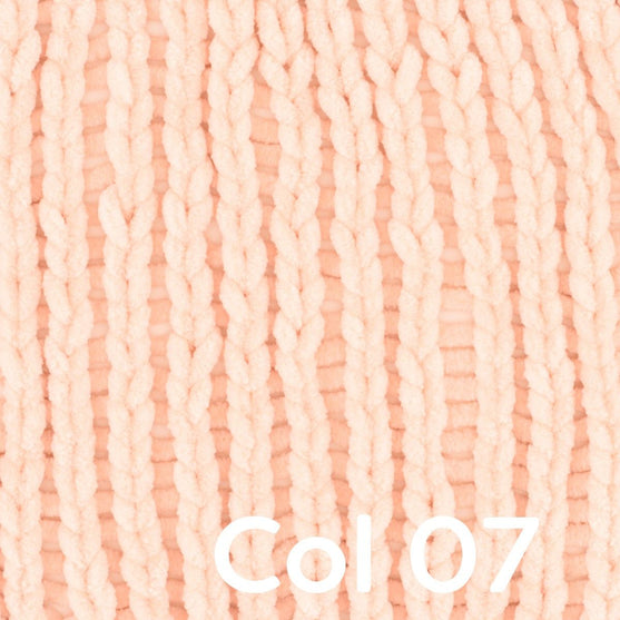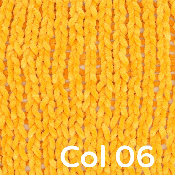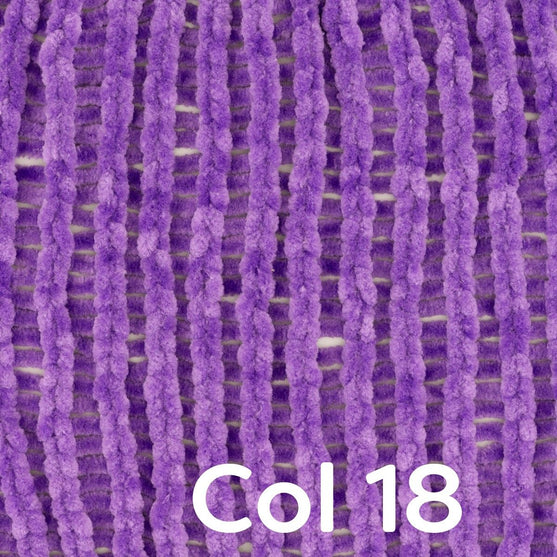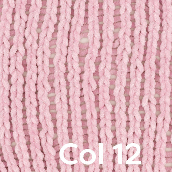 Crafters will appreciate its versatility and distinctiveness, being thinner than the standard chenille yarns, yet still workable with 5 mm (US 8) knitting needles and a 6 mm (US J-10) crochet hook. This type of yarn will create a plush and dense result with even the most simple stitches.