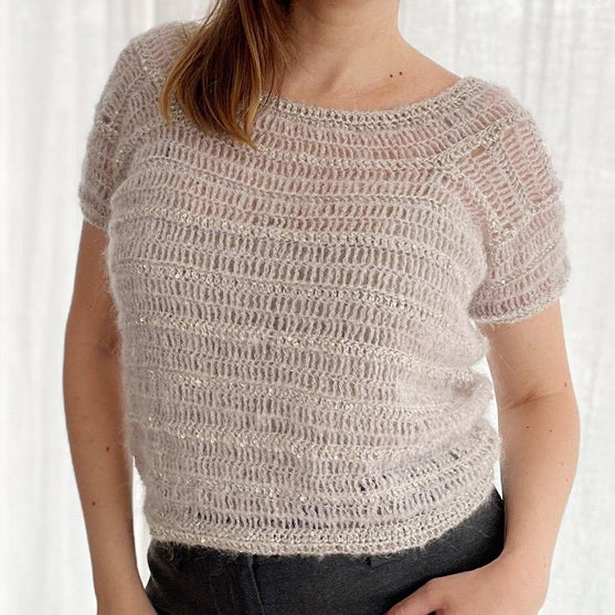 This delightful t-shirt is crafted from the bottom up using a captivating blend of two yarns, resulting in a garment that's as stylish as it is comfortable.