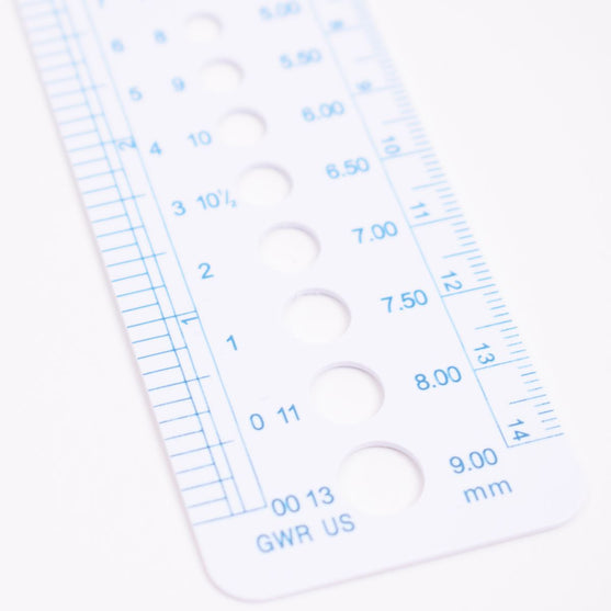 This needle sizer is the perfect tool if you want to check the size of your hooks or knitting needles. Measures both metric and US needle and hook sizes from US size 0 (2.0 mm) up to US size 15 (10 mm).