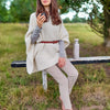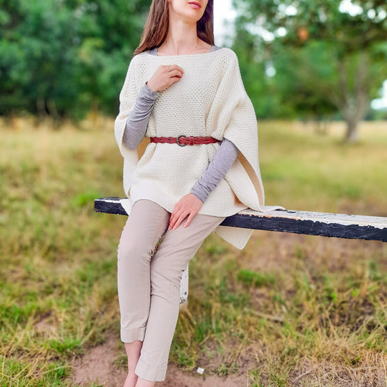 This poncho is the perfect piece for layering over a long-sleeved top or even PJs on a cold morning! It’s warm and snuggly, but doesn’t restrict your movement like thicker jumpers do. Wear it comfortably as is or style it with a belt for a more fitted look.