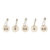 The markers come with the following sizes engraved on them: 2,5 - 3 - 3,5 - 4 - 4,5