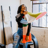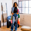 Be bold while sporting the Bestie Scarf, a color blocked extra long scarf with bands of vibrant color and cozy texture.