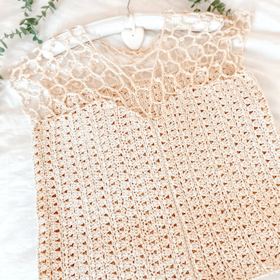 A whimsical crochet vest with lace detailing at the shoulders, this can be added to layer an outfit as winter turns to spring.