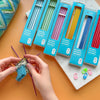 Si vous aussi vous aimez la couleur, jetez un œil à ces jolies aiguilles à chaussettes. Elles sont en aluminium et ont un joli aspect métallique d'un bout à l'autre. Chaque taille a sa propre belle couleur, il ne vous faudra donc pas longtemps pour trouver celle dont vous avez besoin.