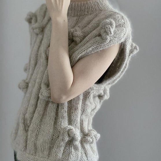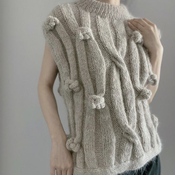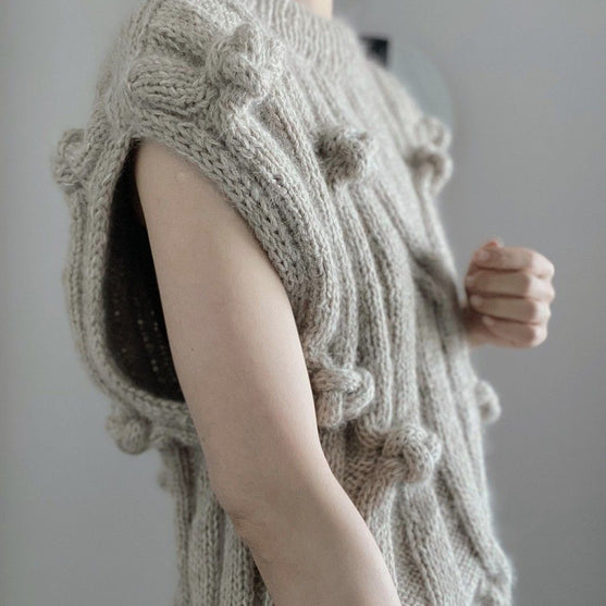 Rainforest slipover is an oversized knitwear inspired by the natural beauty of tropical plants. This eye catching garment features playful 3d cables, folded ribbing collar and integrated double knitting trims. Rainforest slipover is worked from top down in mixed cable stitches in one piece.